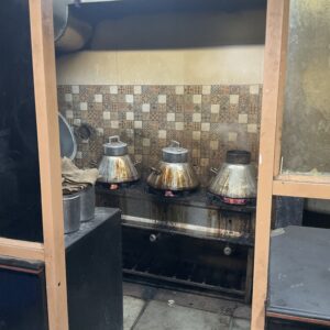 こういう口が狭くなった鍋で、ガンガンに茶を沸かしている。弱く煮立てているのではなく、ガンガンやっているのが、火の大きさでわかると思う。これをどうやら1時間以上にわたってやるらしい。煮詰めてとにかく濃い紅茶を作りたいなら、口を狭くする理由がないし、紅茶の成分を十分に抽出するのに、そこまでのカロリーを与える理由はないはず。僕は、味を殺したいのだろうと理解した。飲んでみても、紅茶の味はするのだけど、一回粉末にしたものを溶いたような、言うなれば午後の紅茶のような味になっている。